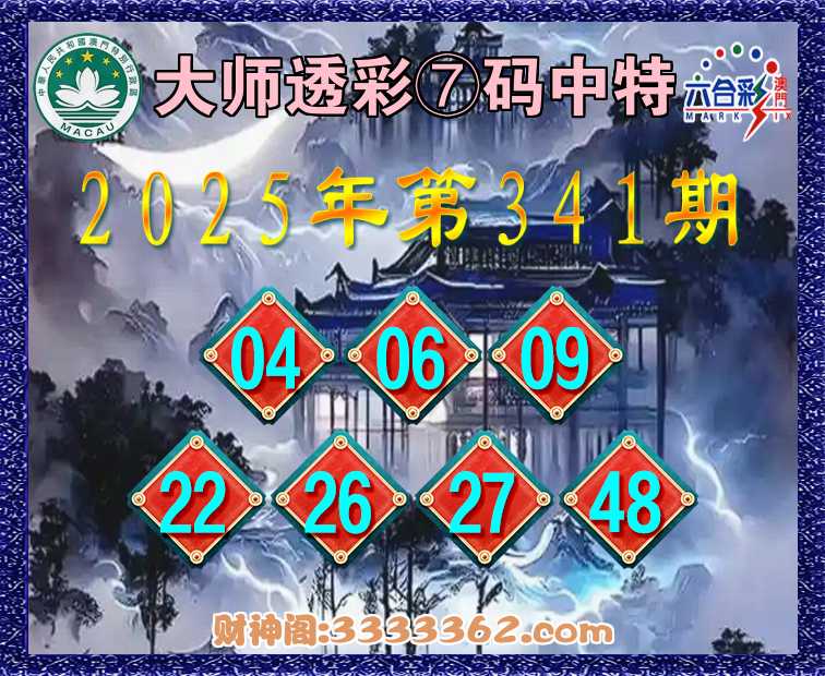 341期:《大师透彩》 🥓⑦码中特🥓【04.06.09.22.26.27.48】开:06