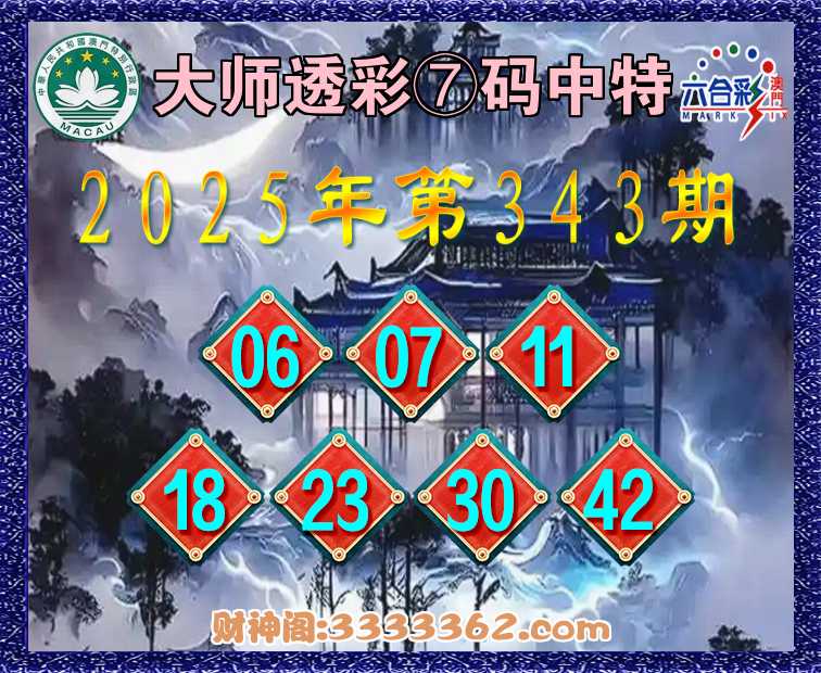 343期:《大师透彩》 🥓⑦码中特🥓【06.07.11.18.23.30.42】开:00准