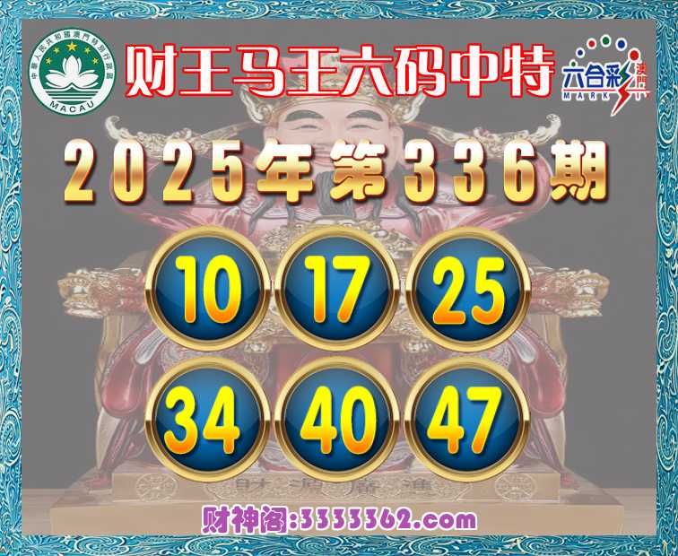 336期:〖财王马王〗 ☘️六码中特☘️【10.17.25.34.40.47】开:17