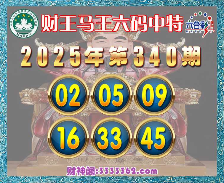 340期:〖财王马王〗 ☘️六码中特☘️【02.05.09.16.33.45】开:16