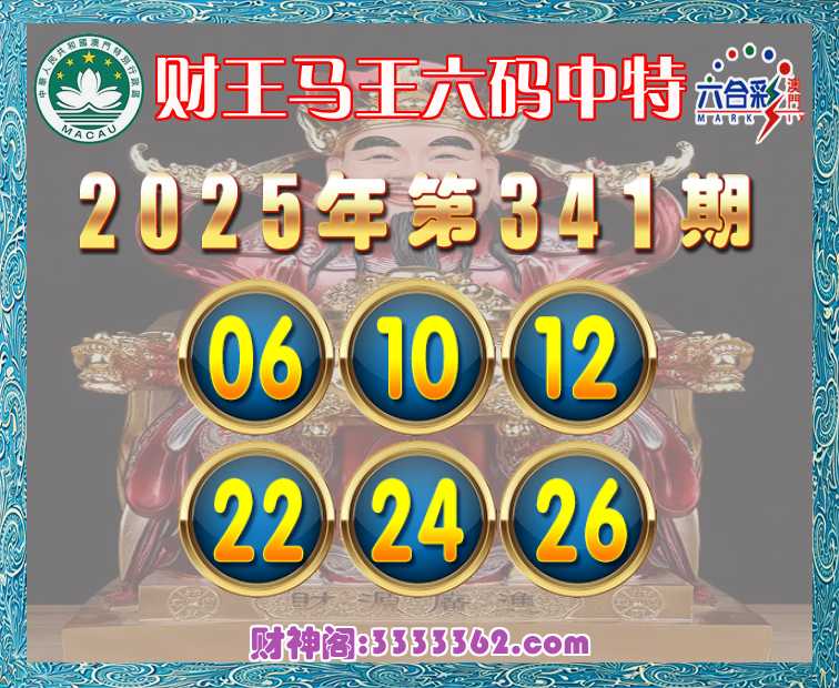 341期:〖财王马王〗 ☘️六码中特☘️【06.10.12.22.24.26】开:06