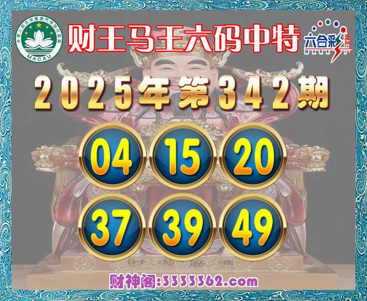342期:〖财王马王〗 ☘️六码中特☘️【04.15.20.37.39.49】开:04