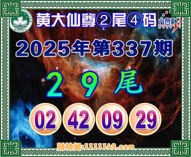 337期:《黄大仙尊》 🎀②尾④码🎀【29尾主:02.42.09.29】开:09