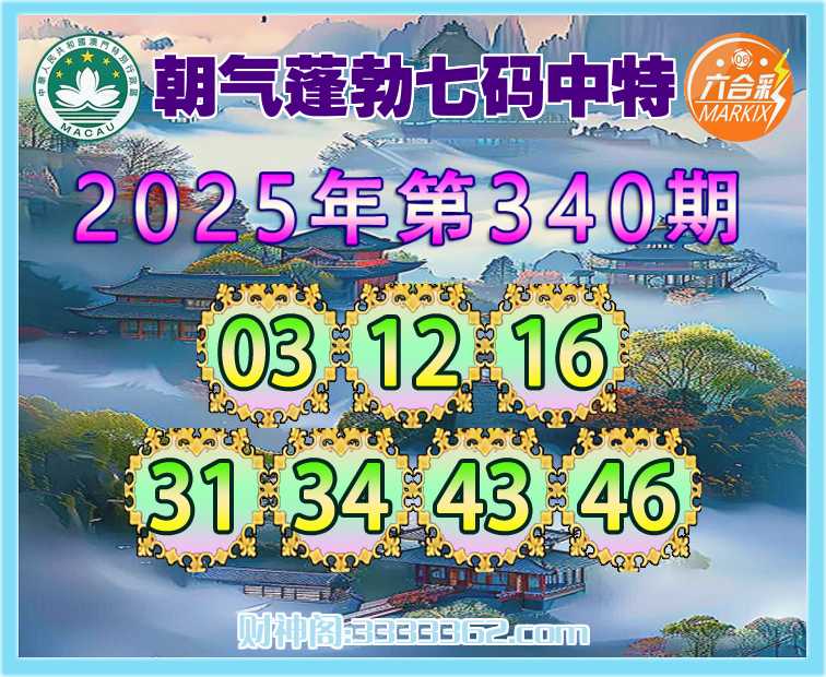 340期: 👉《朝气蓬勃》 👉七码中特👉【03.12.16.31.34.43.46】开:16