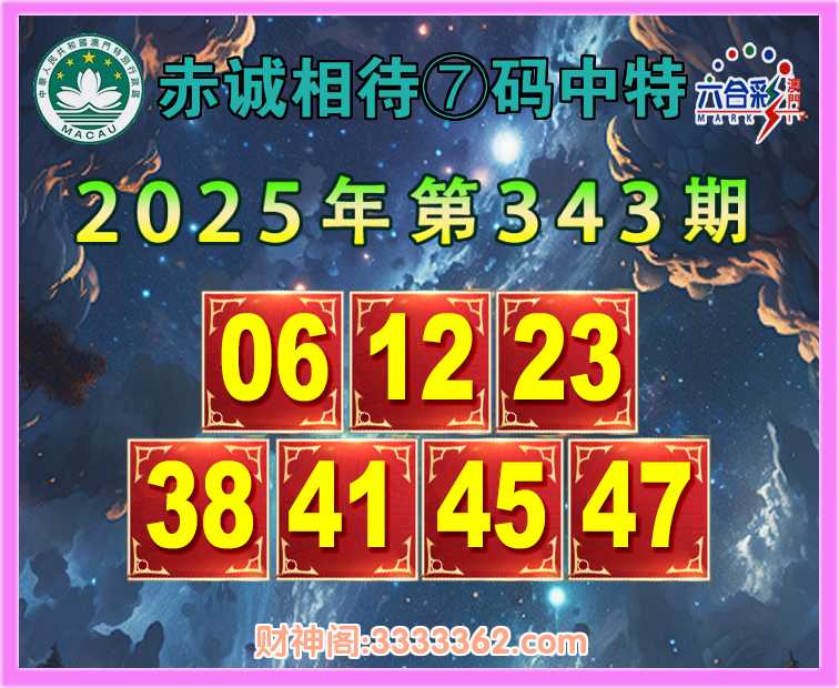 343期:〖赤诚相待〗 🥬⑦码中特🥬【06.12.23.38.41.45.47】开:38