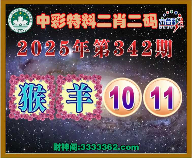 342期:《中彩特料》 🍖二肖二码🍖【猴羊】【10.11】开:00准
