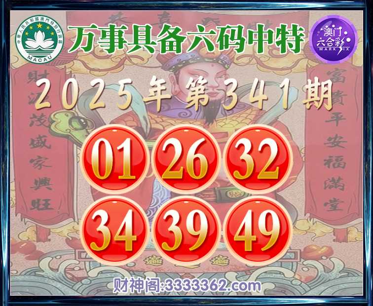 341期:【万事具备】 🌲六码中特🌲【01.26.32.34.39.49】开:00准