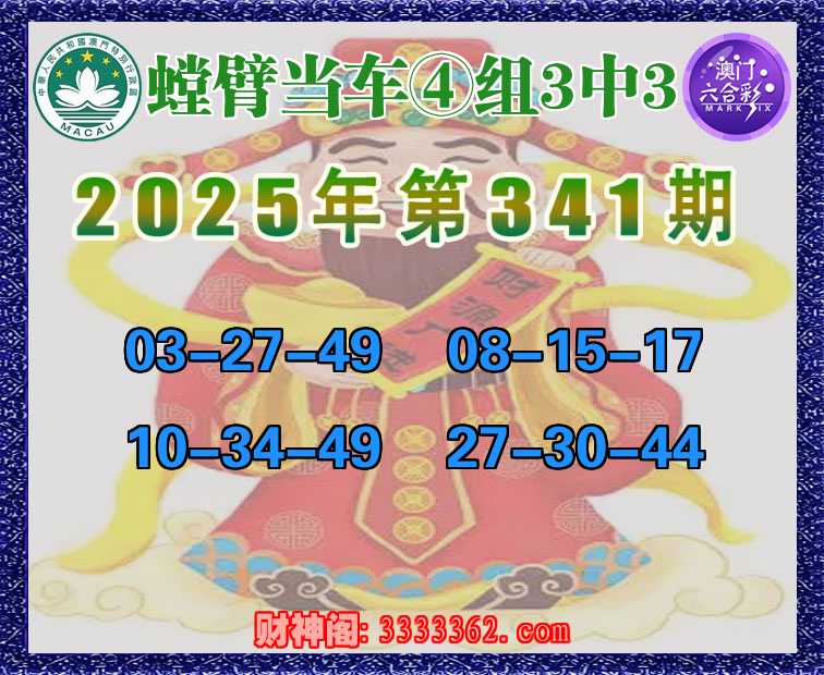 主题 : 341期:螳臂当车【④组3中3】〓 公式推算